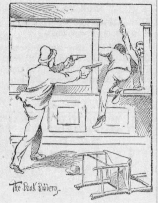 While they talked to the cashier Williams came into the bank waving a gun in each hand. Lyons and Richards jumped through the teller’s window, pulled their revolvers, and shot the cashier.