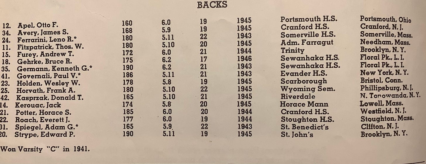 One aspect of his life that often gets lost, at least in my experience, when people talk about Jack Kerouac, is his love of football. As youngster and young adult, he was an outstanding athlete. As a teenager he excelled at baseball and track, but his first love was the gridiron.
